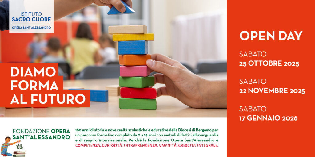 L’esperienza pedagogica centenaria dell’Istituto Sacro Cuore – Opera Sant’Alessandro è la fonte vitale per formare cittadini capaci di affrontare con competenza le sfide di questa società complessa. Le nuove generazioni scoprono il mondo grazie a progetti che hanno come riferimento sia la tradizione educativa umanistico-cristiana sia le indicazioni ministeriali (in quanto scuola Paritaria) sia la formazione delle competenze chiave per l’apprendimento permanente raccomandate dal parlamento europeo. Una scuola per tutti e di tutti, dove ciascuno sviluppa la propria identità, realizzando ogni potenzialità e talento.